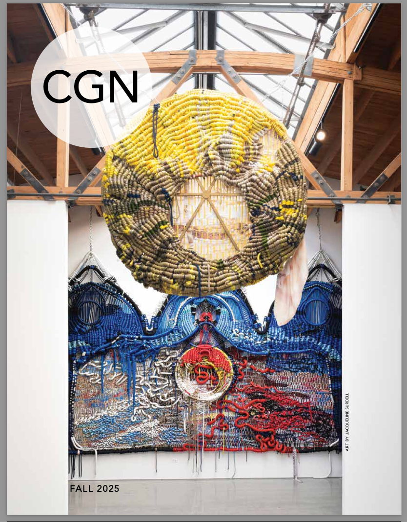 CGN's fall issue covering September-December 2025. Featuring interviews with artist Jacqueline Surdell, artist Theaster Gates, dealer Dan Addington, collectors Melissa Weber and Jay Dandy, various other collectors, curators, and others. Covering the season's exhibitions, auctions, the Chicago Architecture Biennial, Chicago Exhibition Weekend, fall gallery openings, and more.
